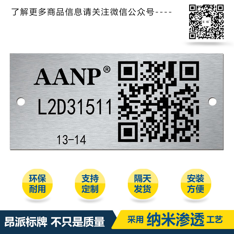儀器零件二維碼銘牌標牌 時間:2018-05-18 18:39:18 分類:金屬二維碼 瀏覽:次 關于金屬二維碼使用特征: 金屬二維碼---進口納米鋁板---高科技德國滲透印刷技術---耐摩擦,耐溶劑,耐高溫,抗摩擦,耐紫外線,耐化學品性,耐腐蝕性,滲透印刷技術做出來的金屬二維碼使用壽命長,不易掉色,金屬二維碼識別率快,掃描率高。 分享收藏: 上一個: 樹木二維碼銘牌標牌 下一個: 倉庫管理二維碼銘牌標牌 相關產(chǎn)品 托盤二維碼銘牌標牌 金屬貨架二維碼銘牌標牌 汽車二維碼銘牌標牌 設施二維碼銘牌標牌 機器二維碼銘牌標牌 石油二維碼銘牌標牌