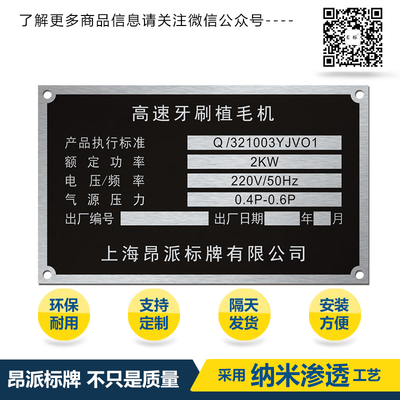 機(jī)器銘牌標(biāo)牌 時(shí)間:2018-05-18 19:05:56 分類(lèi):金屬銘牌 瀏覽:次 標(biāo)牌、銘牌、鋁牌的品質(zhì): 進(jìn)口材質(zhì)鋁標(biāo)牌可以耐高低溫、耐酸堿、使用壽命長(zhǎng)。金屬條碼耐腐蝕、耐汽油、耐溶劑型、耐高低溫、抗風(fēng)、雨、雪侵蝕和日曬,壽命長(zhǎng)。在戶(hù)外或室內(nèi)(廚房/化工廠(chǎng)等場(chǎng)合)惡劣環(huán)境下能使用,壽命長(zhǎng)等諸多優(yōu)勢(shì),贏(yíng)得了來(lái)自世界各地客戶(hù)的認(rèn)可。 分享收藏: 上一個(gè): 固定資產(chǎn)銘牌標(biāo)牌 下一個(gè): 橢圓形標(biāo)牌銘牌 相關(guān)產(chǎn)品