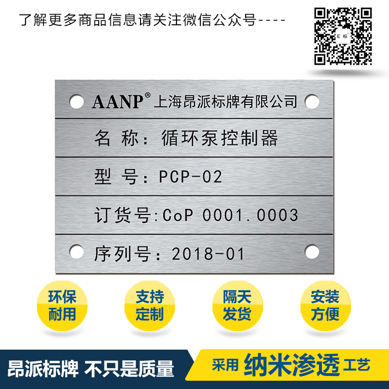 控制器銘牌標牌 時間:2018-09-07 15:11:32 分類:金屬銘牌 瀏覽:次 標牌、銘牌、鋁牌的品質(zhì): 本產(chǎn)品具有耐酸堿、耐熱震、耐高溫、抗沖擊、還具有很強的耐曬、耐磨擦、耐高溫、耐腐蝕、耐有機溶劑等特性,抗紫外線、抗粉化、不受臭氧、空氣污染、在室外陽光照射不易褪色,廣泛應(yīng)用于化工、電力和電信等腐蝕性強或須把標志牌懸掛于室外的企業(yè),歡迎新老客戶拿圖拿樣來定做.不分量大小都可以定做價格合理.質(zhì)量保證交貨準時。 分享收藏: 上一個: 指示標牌銘牌 下一個: 電器銘牌標牌 相關(guān)產(chǎn)品 特種設(shè)備陽極氧化鋁銘牌標牌 陽極氧化指示小銘牌標牌 自動化設(shè)備鋁銘牌標牌 設(shè)備信息陽極氧化銘牌標牌 汽車零配件鋁銘牌標牌 產(chǎn)線標識鋁銘牌標牌