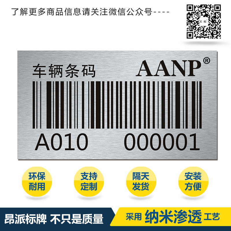 車輛條碼牌銘牌標牌 時間:2018-05-21 16:30:07 分類:金屬條碼 瀏覽:次 關于金屬條碼獨特點-以及-質量優(yōu)勢: 倉儲金屬條形碼、物流金屬條形碼、鐵路運輸金屬條形碼、樹木管理金屬條形碼、耐高溫金屬條形碼、資產管理金屬條形碼、防偽金屬條碼標牌、軍隊裝備金屬條形碼,金屬條形碼用途以及特色,耐候性低、抗惡劣天氣,不受臭氧、空氣污染、酸雨侵襲;耐紫外線、抗紫外線、抗粉化;耐化學品性、抗酸堿侵蝕;耐腐蝕性,氧化潮氣鹽份滲透率低;防霉菌污損耐濕性優(yōu),并能保持光潔,易于保養(yǎng)清洗,不易變色、褪色、爆裂、粉化等! 分享收藏: 上一個: 集團條形碼銘牌標牌 下一個: 科技公司條碼銘牌標牌 相關產品 感應器鋁合金條形碼銘牌標牌 工程系統(tǒng)管理使用金屬條形碼銘牌標 物流管理鋁制條形碼銘牌標牌 倉庫管理鋁制條形碼銘牌標牌 流水號鋁制條形碼銘牌標牌 序列號鋁制條形碼銘牌標牌