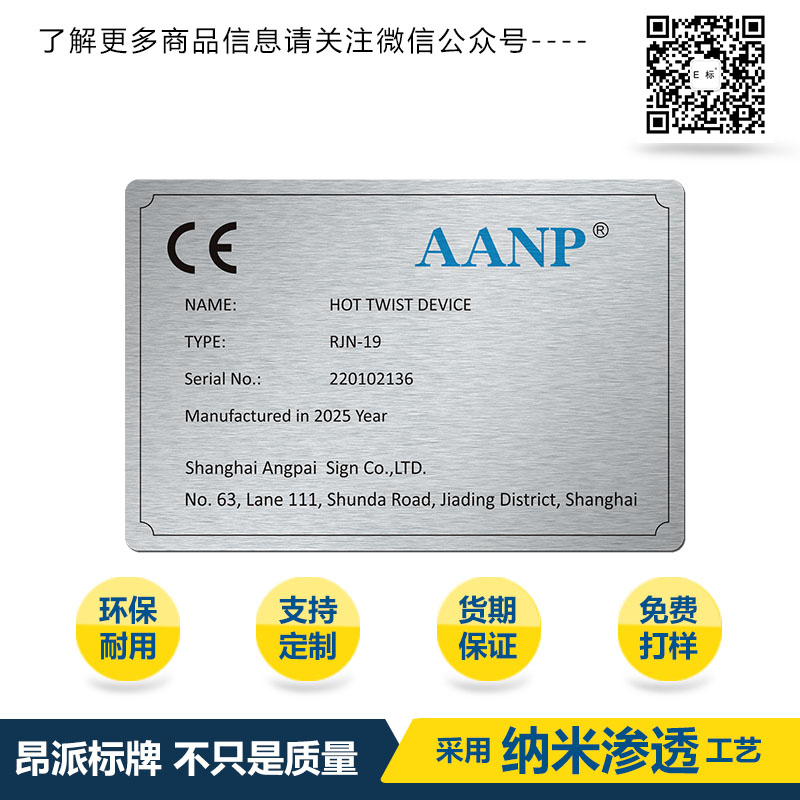 體系,對你的需求我們有絕對的信心做好。昂派標(biāo)牌”將不斷努力創(chuàng)造出更高品質(zhì)的銘牌,為用戶提供更佳服